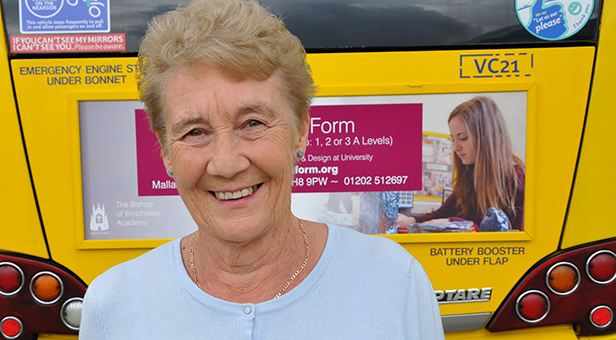 A proud nan whose granddaughter is pictured on a bus advert campaign was invited by the company to have a closer look – after chasing it for weeks.