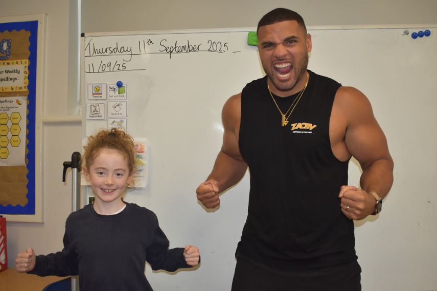 Children at Witchampton C of E First School were treated with a visit from Steel, one of the stars of TV gameshow ‘Gladiators’.