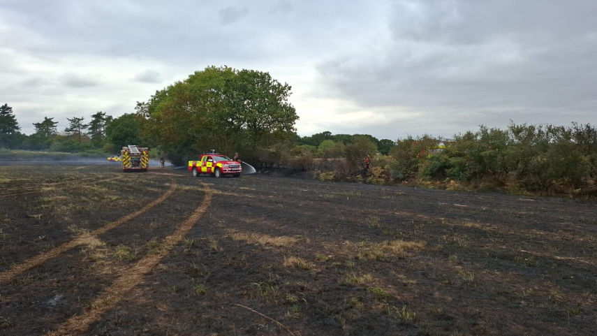 Crews from across the area raced to put out a fire in Alderholt that had spread across two fields.