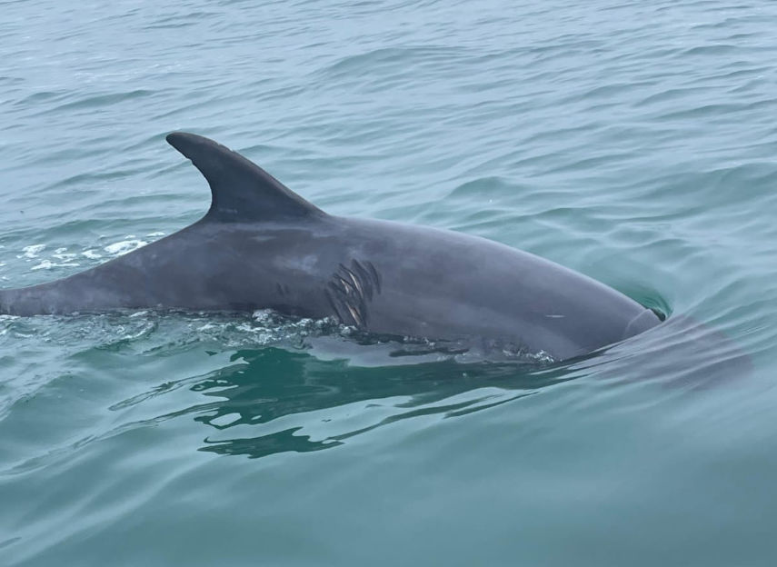 A lone dolphin has been delighting visitors to Lyme Regis Harbour this summer, but there are signs it has been injured by careless humans.