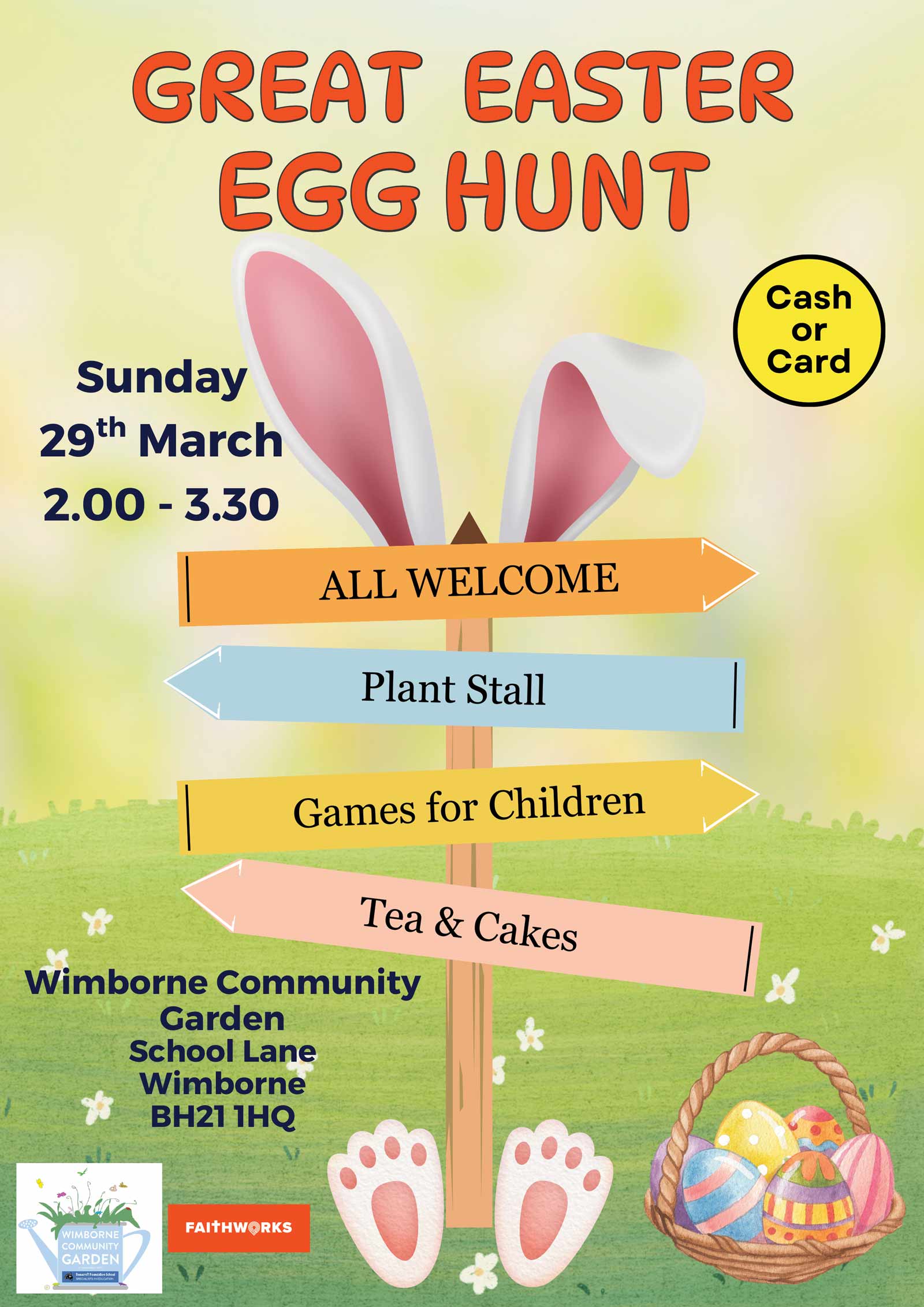 Wimborne Community Garden is inviting local residents to come along to the Great Easter Egg Hunt on Sunday 29 March from 2pm—3.30pm.