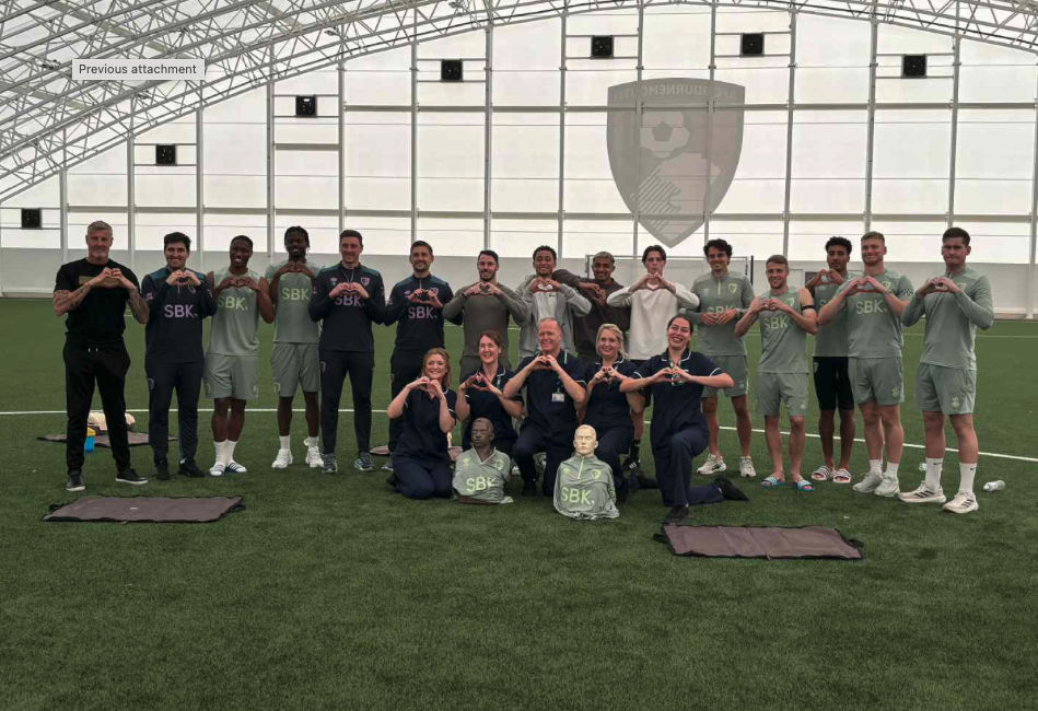 University Hospitals Dorset’s Resuscitation Team has taught members of AFC Bournemouth how to give CPR and to use a defibrillator.