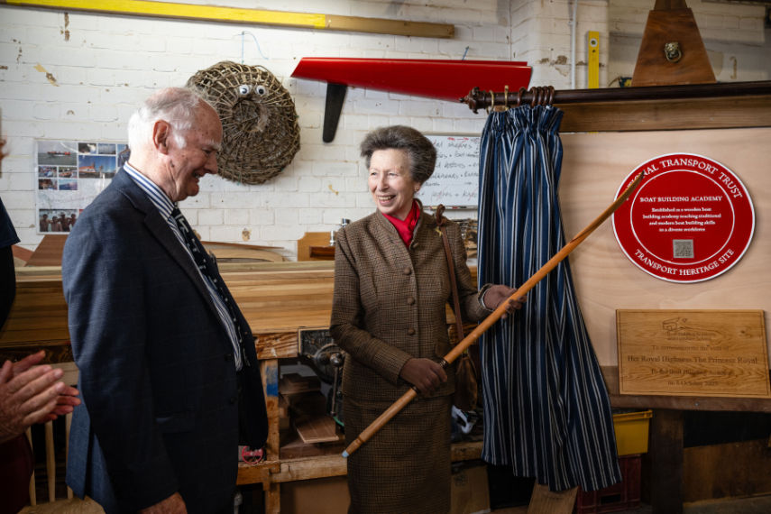 Her Royal Highness the Princess Royal visited the Boat Building Academy (BBA) in Lyme Regis and met students past and present.
