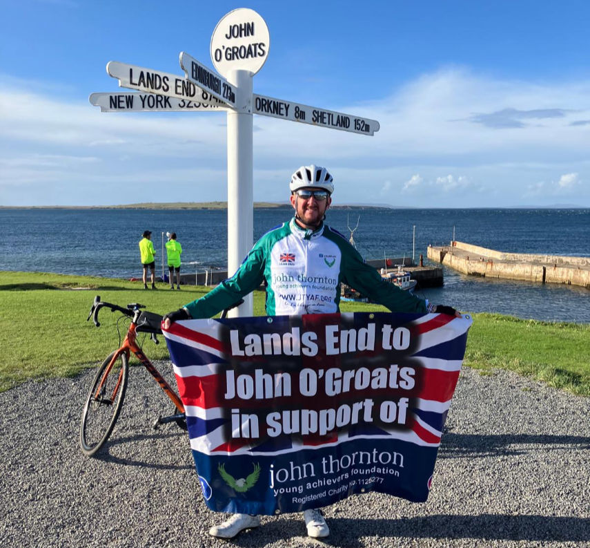 Dan Avery-Hebditch cycled from Land’s End to John O’Groats raising £5,260 for the John Thornton Young Achievers Foundation.