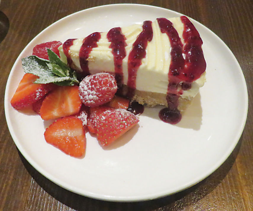 For dessert, we split a slice of vanilla cheesecake. Served with sauce and fresh fruit, the cheesecake topping was delicious, soft and creamy, while the buttery biscuit base was sweet and tasty. An excellent end to an excellent meal out.