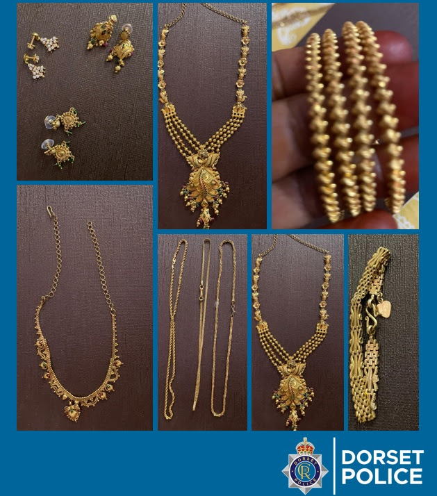 A bracelet, bangles, earrings, three chains and two necklaces were amongst a haul of jewellery stolen from Rownhams Road.