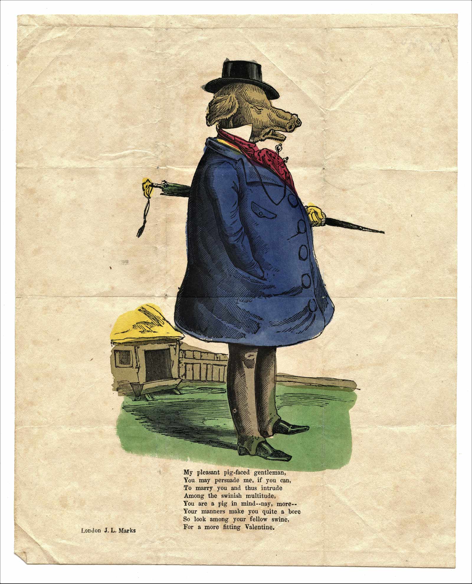 Popular from the 1840s onwards, Vinegar Valentines were cheaply produced and mass-posted, often anonymously, to discourage unwanted admirers or settle scores.
