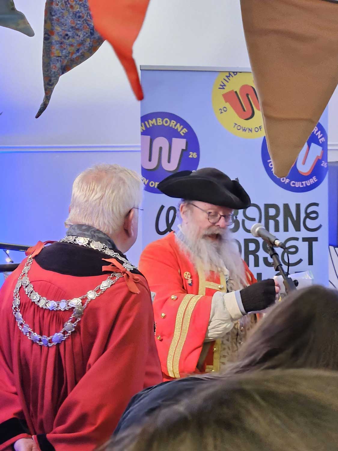 After an introduction by town crier Chris Brown and Mayor of Wimborne Minster Cllr Jeff Hart, there were speeches by David Smith, chair of East Dorset Heritage Trust; David Lockwood, CEO of The Arts Development Company (which created the Dorset Town of Culture programme); and Emma Kerr, the Wimborne Town of Culture project manager.
