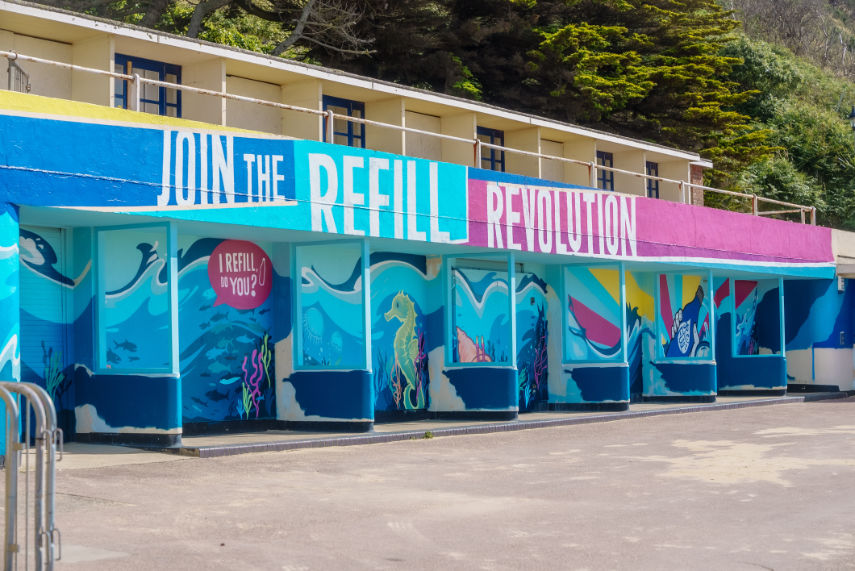 Created by renowned graffiti artist, Rick Walker, the artwork includes eco messaging like ‘Join the Refill Revolution’ and features a range of ocean animals, as well as a selfie area.