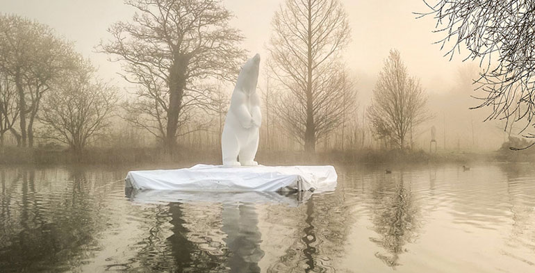 Weighing in at 1,900kgs and the same size as the largest-ever recorded polar bear, ‘Boris’ travelled into the county on the back of a flatbed truck and arrived safely at the park at the end of February. It is now floating on an ‘iceberg’ in one of the many lakes at Sculpture by the Lakes.