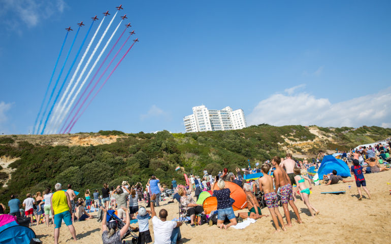 Displays include the Red Arrows, Battle of Britain Memorial Flight and Typhoon displaying on all four days. The RAF Chinook, the Blades, Fireflies, the Tigers Freefall Parachute Display Team, Rich Goodwin, Ultimate Warbirds, Royal Navy Black Cat, SuperAeroBatics Wingwalkers and Rolls Royce Spitfire can also be seen. Night Air entertainment on Thursday, Friday and Saturday includes Royal Navy Beat Retreat Sunset Ceremony and Royal Marines unarmed combat demonstration, followed by dusk flying from 7.20pm. The big screen in the Lower Gardens will be showing films from 8pm. The Friday and Saturday evening’s entertainment will finish with fireworks from Bournemouth Pier at 10pm.