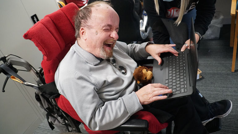 Ian has been using his laptop for sensory activities such as listening to music and playing games with sounds. He really enjoys using it to play ‘Who Wants to be a Millionaire’ and is looking forward to being able to video call his family and friends.