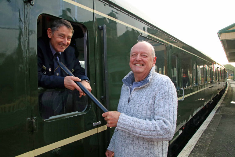 Now living in Swanage, Peter said: “It was great to drive the special train into Corfe Castle station and see Bob Richards waiting on the platform like he used to when a signalman there 50 years ago. It was a brilliant day that I will always remember.