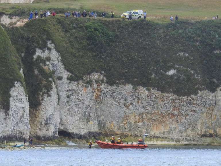 While a lifeboat crew member went ashore to check the casualties were okay, the coastguard unit who were on top of Old Harry had spotted the missing oar and relayed the message to the lifeboat crew, who picked it up and returned it to the kayakers. The kayakers made their way ashore at Middle Beach whilst the lifeboat stood by before returning to the station.