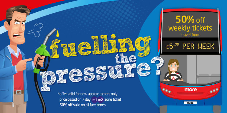 Customers using the Morebus app for the first time can travel in any zone as often as they like for their first week with 50 percent off standard seven day tickets, by using the discount code FUEL.
