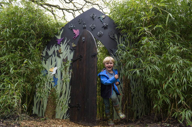 The giant fairy door houses a smaller door that allows visitors to enter a bamboo maze. They join more than 40 tiny fairy doors that are hidden around the garden and have proved popular with young visitors.