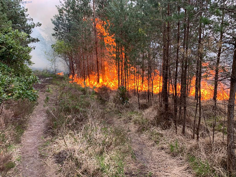 The first incident was reported at 2.18pm on 3 May, and involved two separate fires off Hurn Road, St Leonards and St Ives. At that point, one fire was approximately 200 metres by 150 metres and the other was approximately 300 metres by 200 metres. Fire engines from Ringwood, Ferndown, Christchurch, Wimborne, Springbourne, Redhill Park, Swanage and Sturminster Newton were in attendance, together with small 4×4 appliances from Ferndown, Ringwood and Christchurch, the Unimog from Wareham and water carriers from Ringwood and Poole.