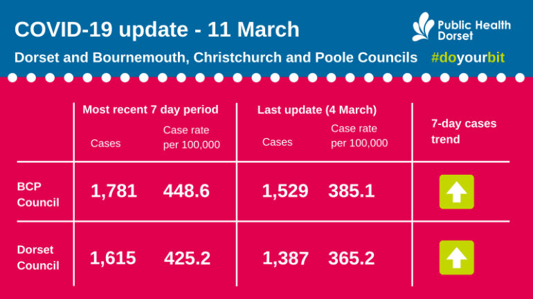 Ahead of the removal of free universal testing from 1 April, Public Health Dorset is reviewing how it shares data on the local situation. The format and frequency of this weekly update may change in the coming weeks to ensure that the data shared remains relevant and useful for understanding the level of risk from Covid-19 locally.