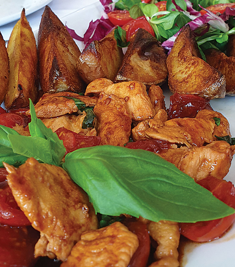 I ordered Pollo Tricolore for my main, recommended by Marco. It was a hot day and I was told the pan-fried diced chicken fillet cooked with garlic, cherry tomatoes and fresh basil, served with oven baked potatoes and salad would be refreshing.