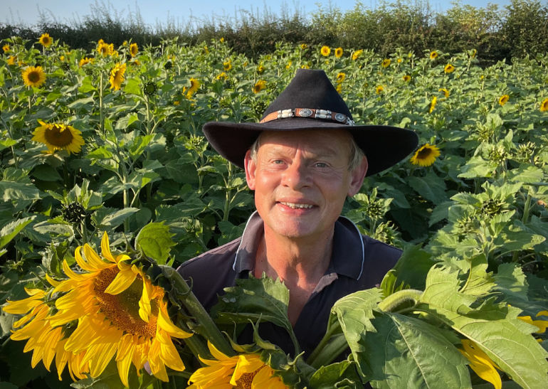 The actor who stars in Doc Martin, grew the sunflowers in fields at his home in Beaminster on the original site of Buckham Fair.