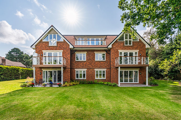 There are eleven apartments in this secure community, each built to the highest standards and boasting Pennyfarthing Homes’ Gold Specification. Luxury features include modern, integrated kitchen appliances and the latest video entry system. Each has open plan living space, ample sized bedrooms and the added benefit of plenty of storage space and separate utility rooms. Private patios and balconies extend the living areas bringing the outdoors in, with views over the beautiful maintained private grounds.