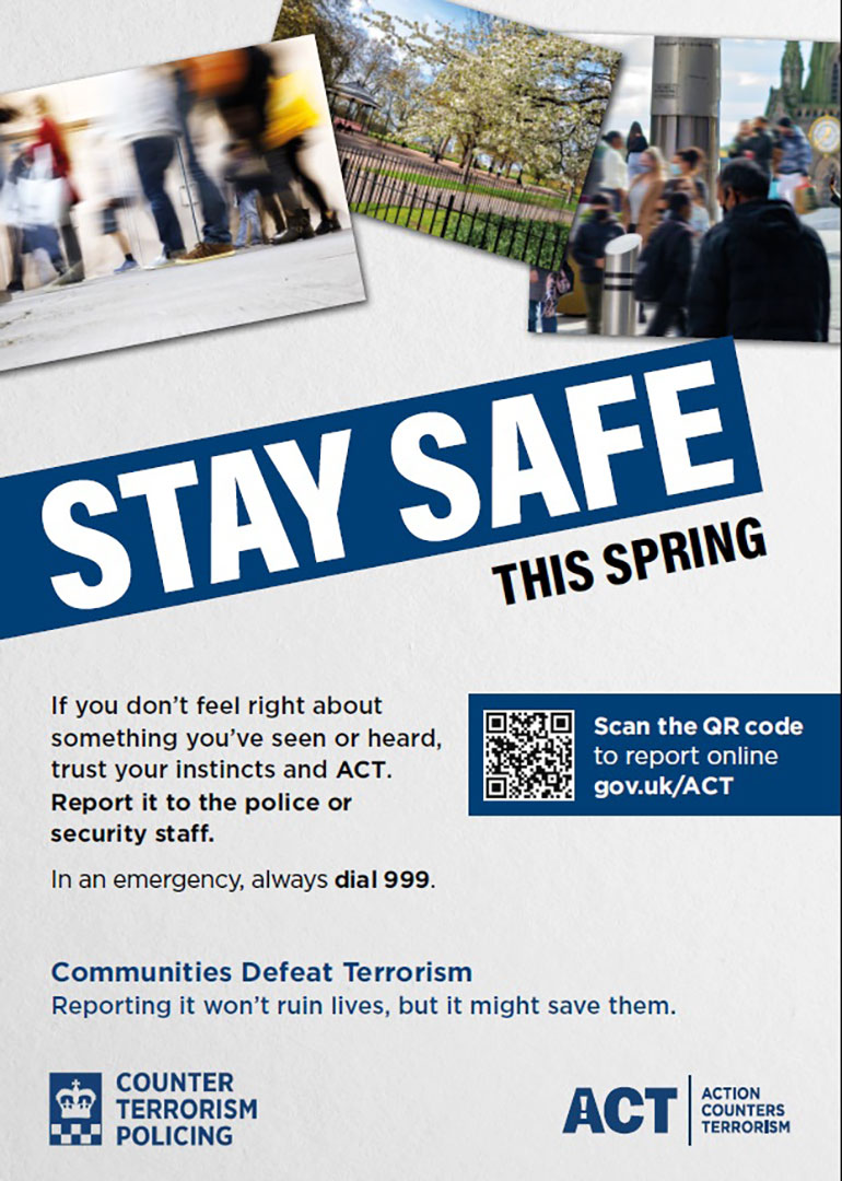 The threat to the UK from terrorism remains at substantial, meaning an attack is likely, and as public places such as non-essential shops, hospitality and sports events begin to open up, the security experts at counter terrorism policing have launched a new vigilance campaign to encourage everyone to help the police tackle terrorism and save lives by reporting any concerns.