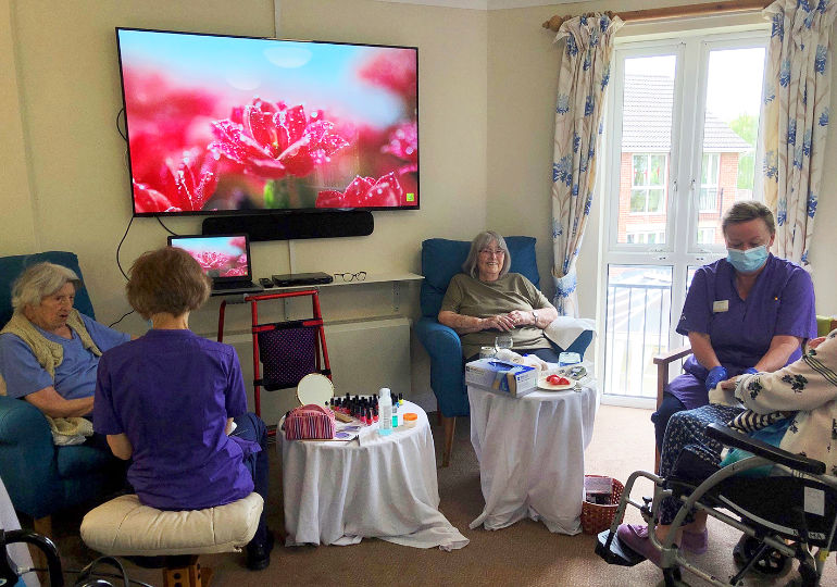 The care home made an entire day out of the wonderful opportunity by revamping their sensory room to replicate a personal shopping experience. There was a nail station set up for hand massages and manicures, for those who wished to have a pamper, and another table with fizzy cava, soft drinks, strawberries and pink wafers available to enjoy whilst the residents shopped.