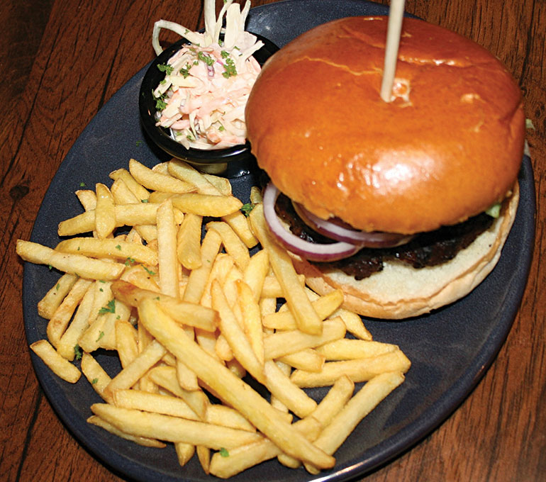 Served in a toasted brioche bun with seasoned skinny fries and a crunchy house salad, he declared the burger was succulent, and went so well with the accompaniments.