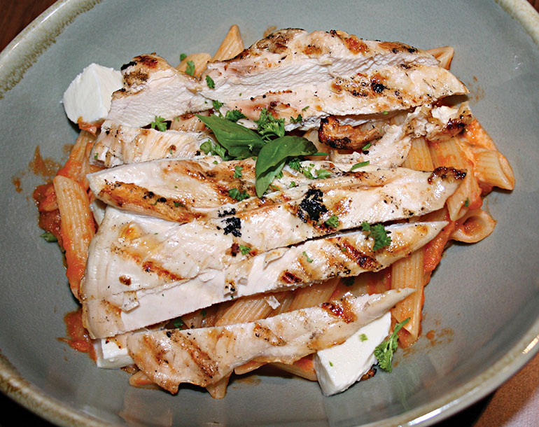 There was a trio of speciality meats in a min brioche bun, chicken and mini ribs or red pepper quiche, but I plumped for mozzarella pasta with the addition of chargrilled chicken – which was very lean. The pasta was cooked to perfection and the cheesy tomato sauce wasn’t over-salted.