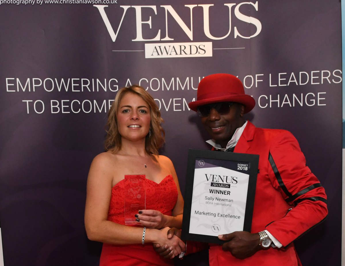 Poole-based BOFA International has added another prestigious regional business award to its list of 2018 successes, with Marketing & Communications manager Sally Newman being named winner of the Marketing Excellence category of the Venus Awards.