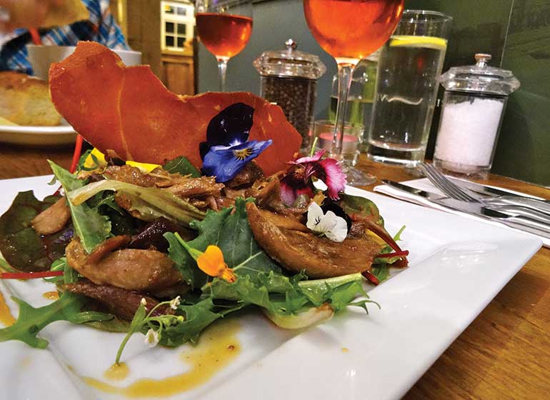For starters, I delved into something truly delicious, the Soup of the Day, which was a parsnip and honey medley of flavours with some beautiful cuts of rustic bread. Marta opted for the Confit shredded duck, crispy Parma ham salad and rum-soaked figs and her meal looked as beautiful as it tasted. I couldn’t resist sharing a few bites.