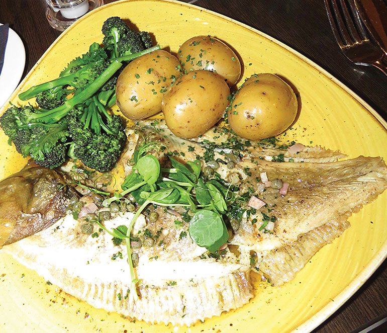 My whole plaice was stunning. The care that had gone into cooking it perfectly and presenting it in an artistic manner paid tribute to the fish. It was dressed with capers, (at Jan’s suggestion), came with beurre blanc, new potatoes and broccoli. It is so rare to get a plaice of this size that for a moment I imagined it was a Dover sole. The softness of the white flesh, the freshness of the pea shoots and the capers that popped with flavour was a superb combination. I asked for tartar sauce, to help balance the beurre blanc, possibly a slice of lemon would have done the same. The potatoes were moreish and the broccoli spears had the crunch that I love with vegetables.
