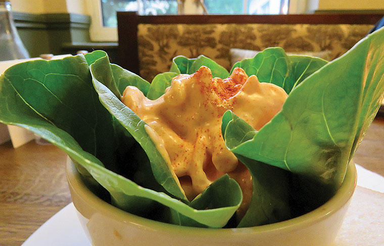 Ben’s two generous portions of smooth chicken liver paté, presented with toast and a salad, gazed at him from a bed of caramelised onion. He soon cleared his plate and was ready to roll with the next course.