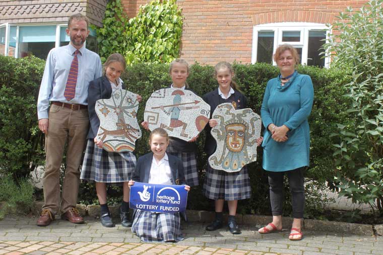 Creative Year 6 pupils at Dumpton School, Wimborne have designed and produced three ‘Roman’ mosaics as part of a Heritage Lottery funded mosaic project with mosaic artist Joanna Dewfall.