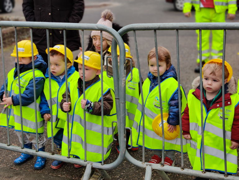 The youngsters from Tops Day Nurseries in Leigh Road were invited by contractors to see the work going on to provide cycle paths.